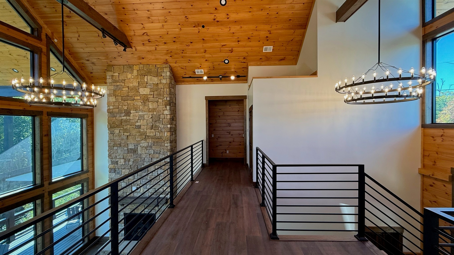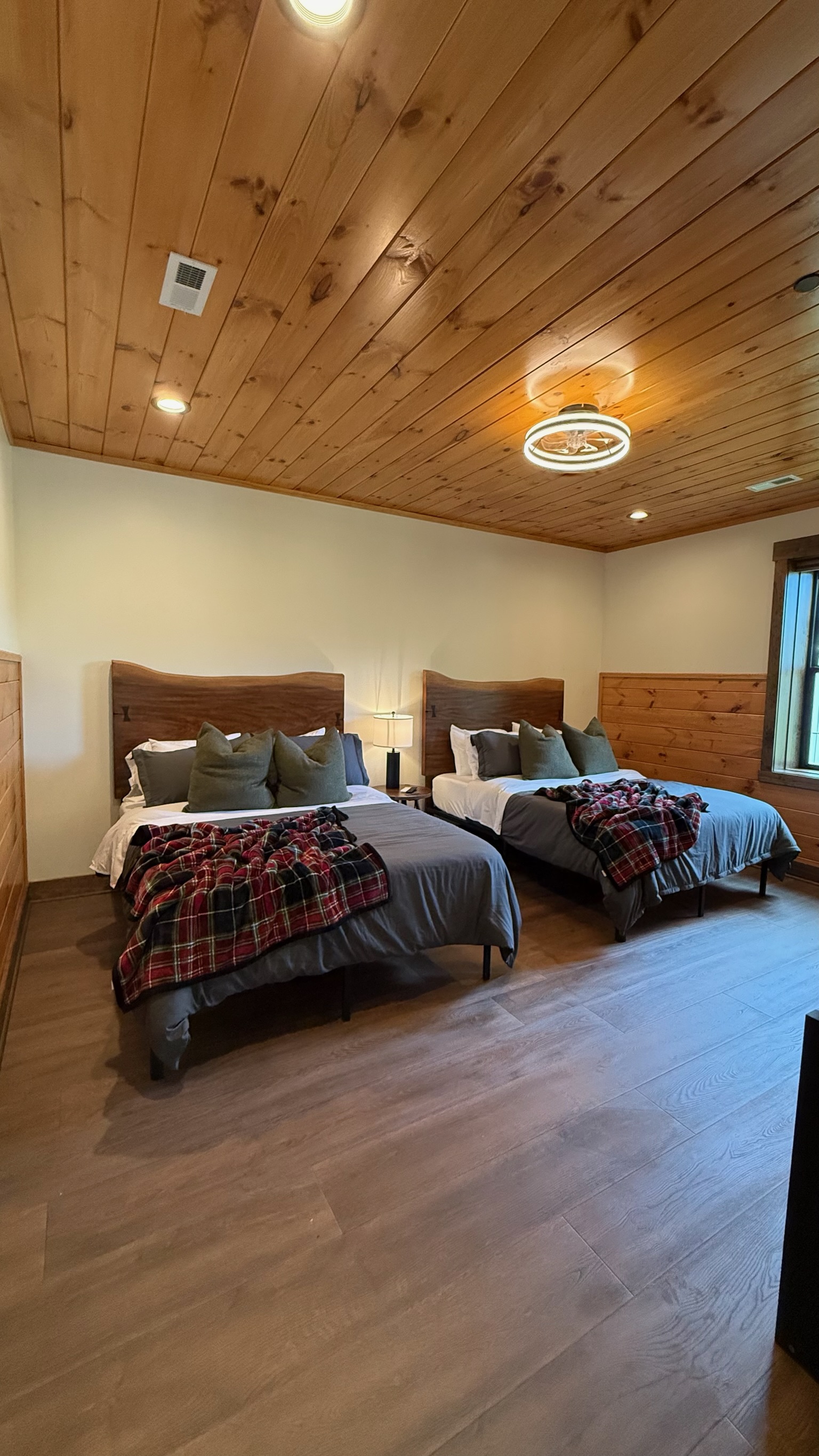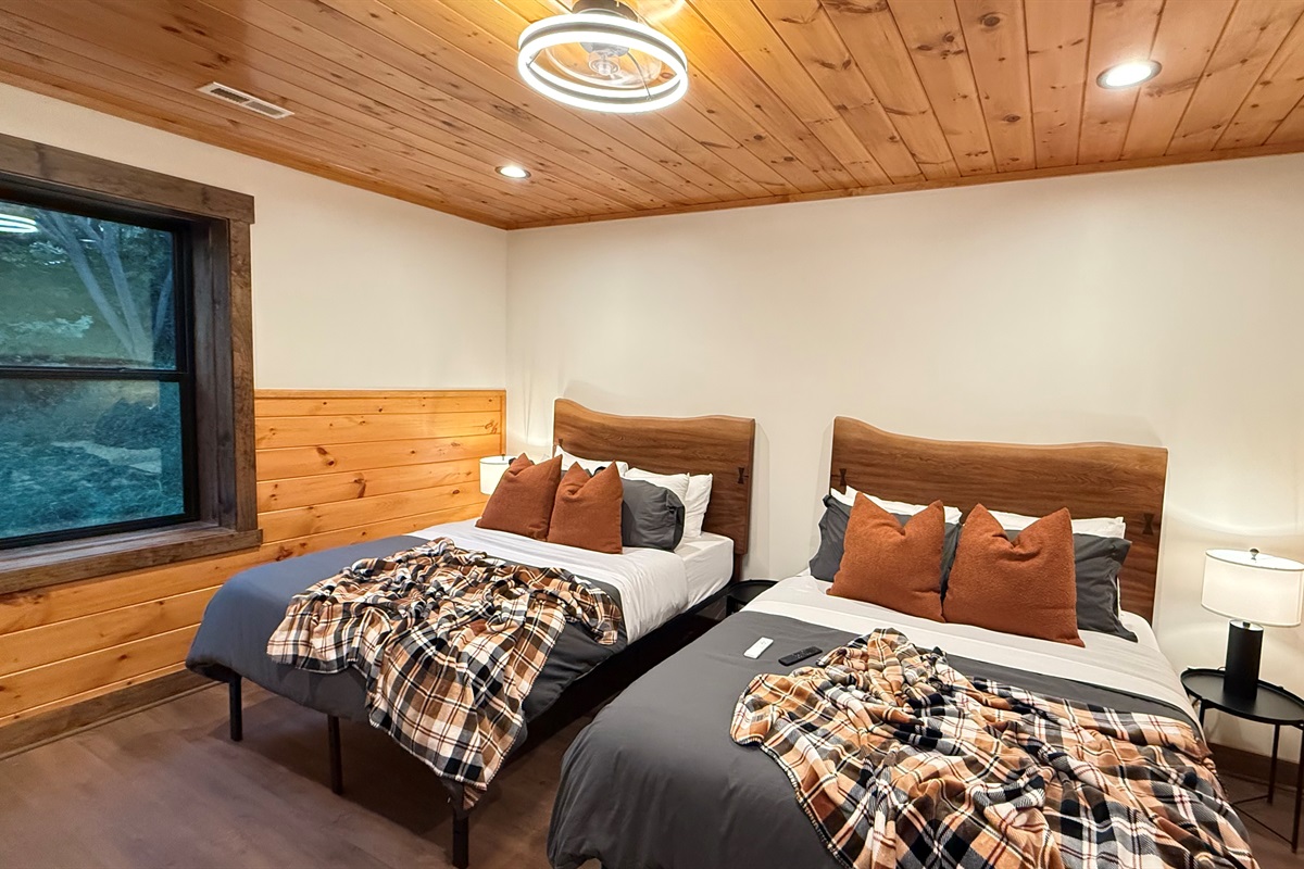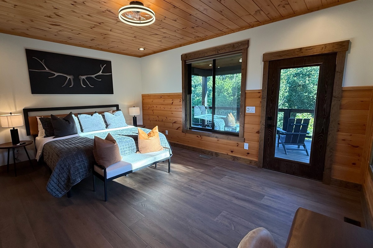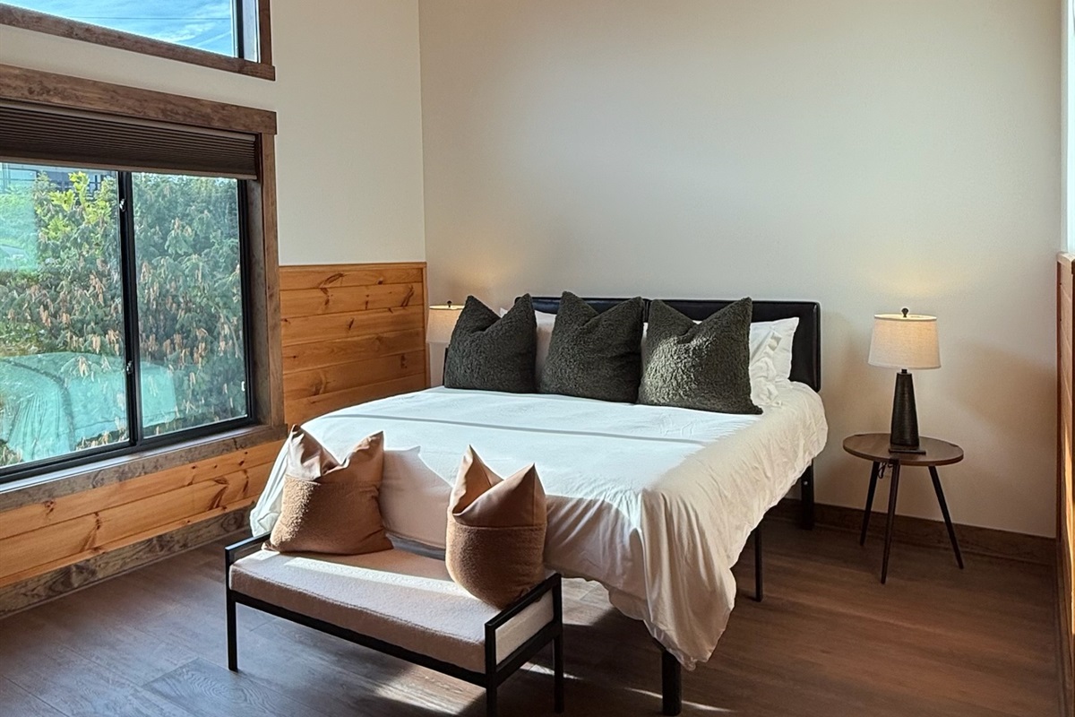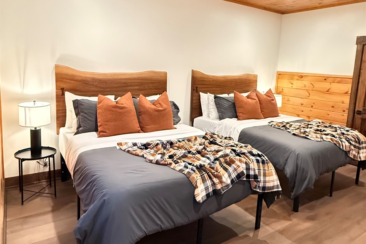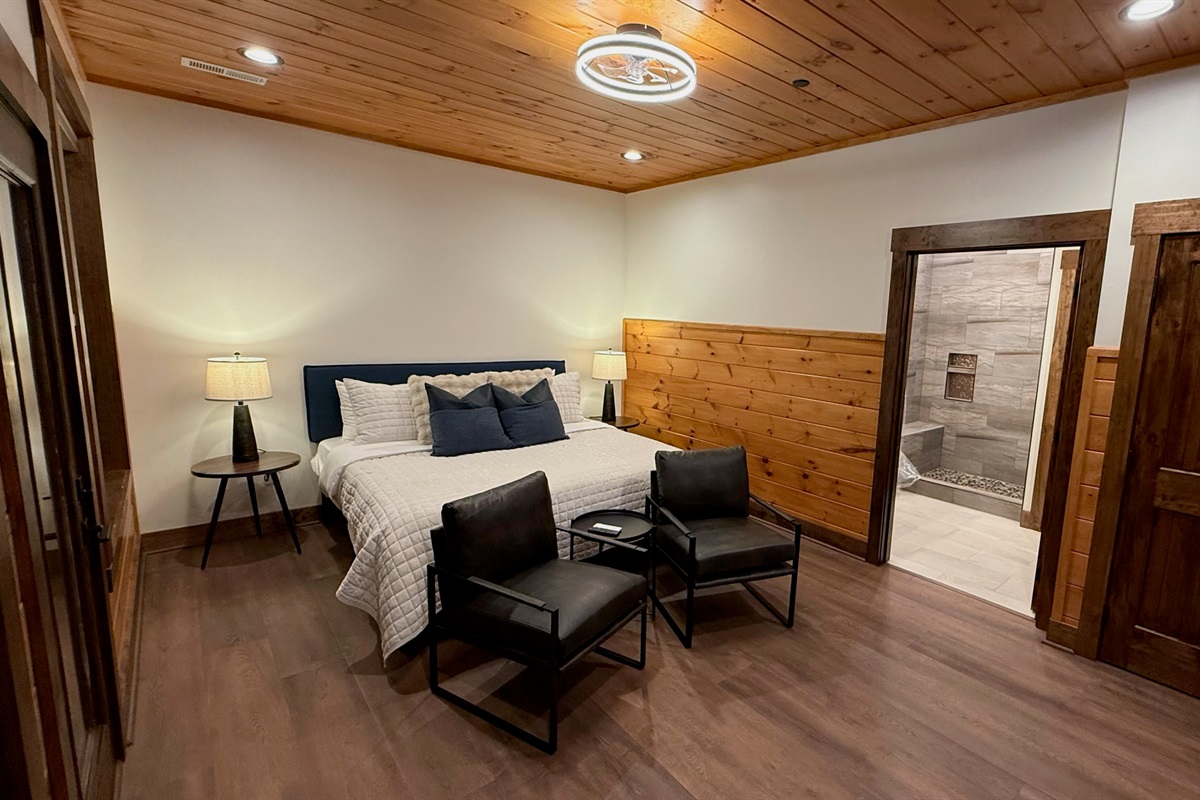Soaring 30-foot ceilings with huge windows to bring the outdoors in; a dramatic floor-to-ceiling stone fireplace anchors the main living area, creating a warm, open space ideal for gathering with family and friends. Each of the 8 spacious bedrooms includes its own private en-suite bathroom, offering luxury and privacy for all guests. With over 8,000 square feet, there’s ample space for all.