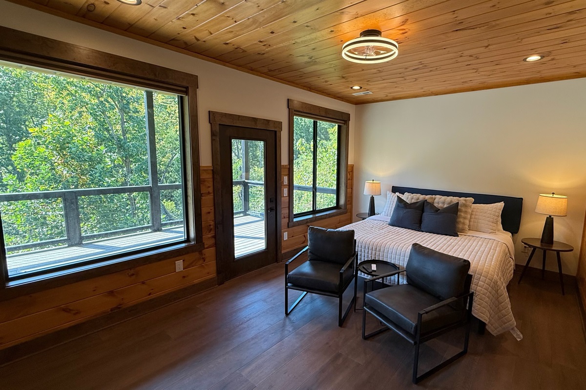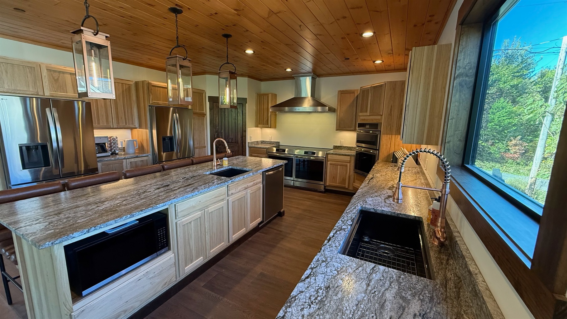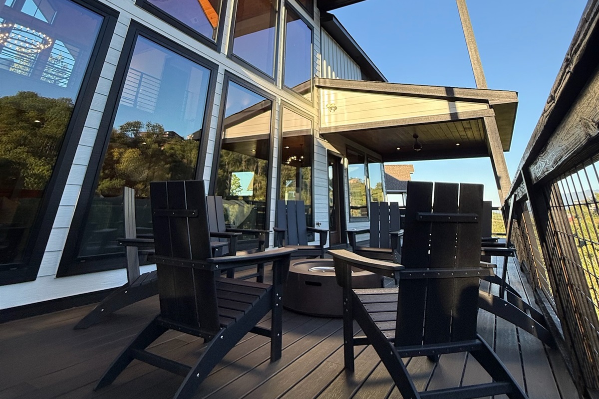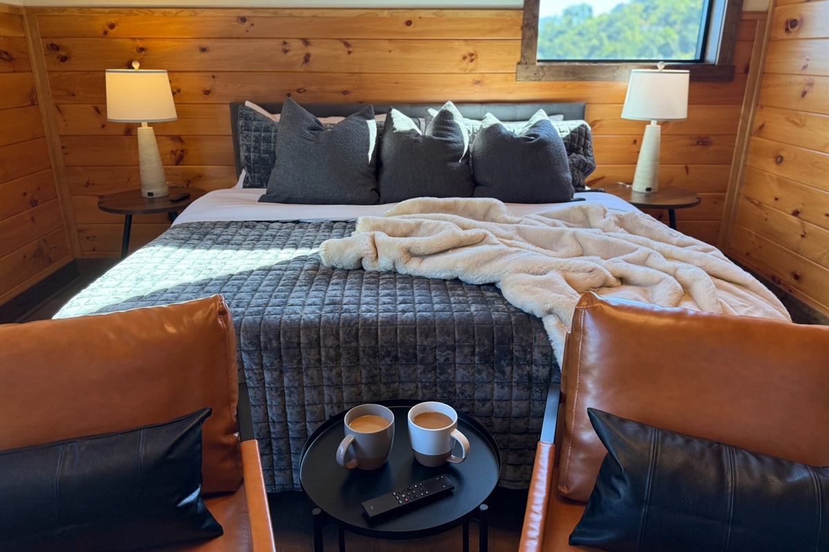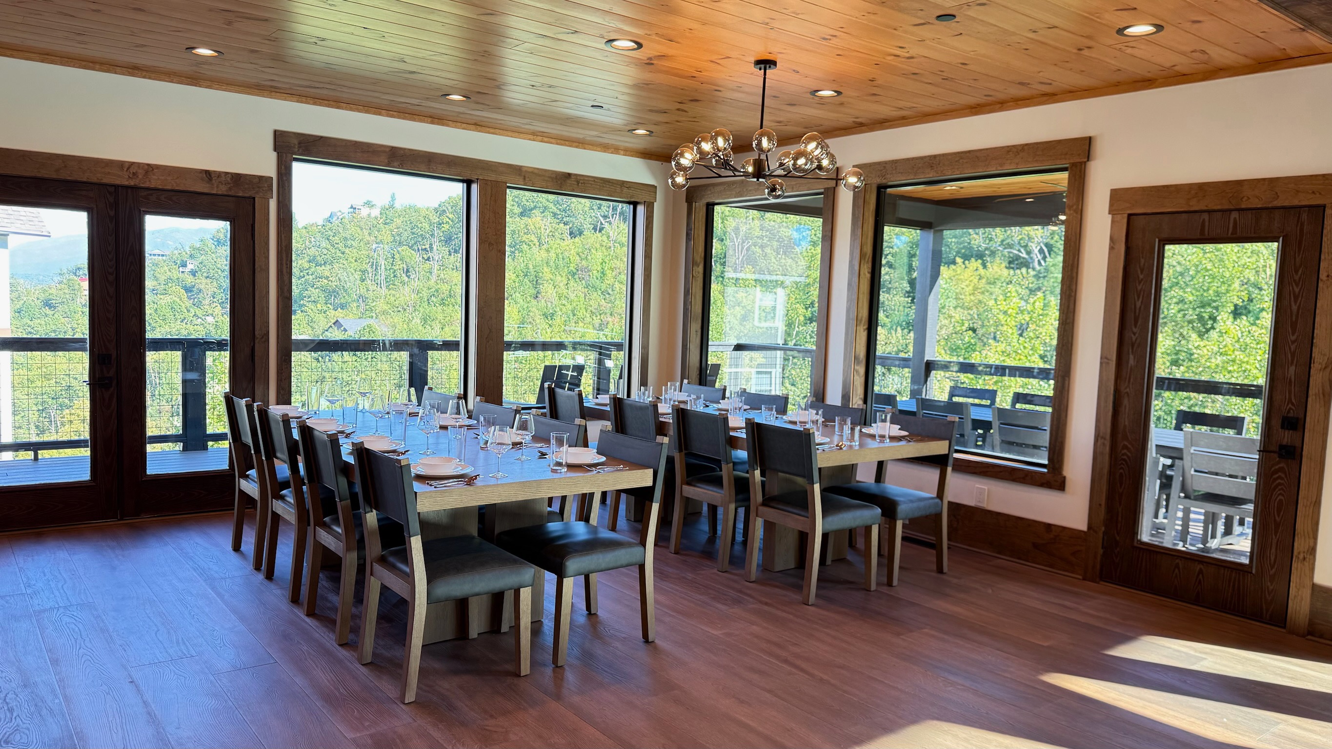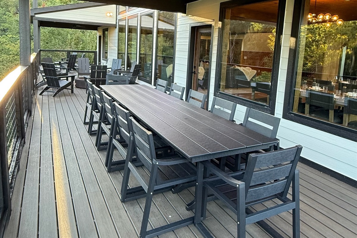 The heart of the home is the fully stocked chef’s kitchen, thoughtfully designed for large groups and entertaining. It features 2 full-size refrigerators, 4 ovens, 2 dishwashers, 2 sinks, 2 microwaves, and a dedicated coffee bar, ensuring you have everything you need to prepare and enjoy meals with ease. On another floor, a separate kitchenette features a third full-size refrigerator, dishwasher, microwave, sink, coffee bar and high output ice maker, add even more convenience. No need to buy ice for your coolers for the outing into the National Park or Dollywood. With dining seating for the entire group, shared meals become memorable experiences—whether indoors or on the expansive wrap-around covered deck with breathtaking mountain views. Sit around the fire table, relax and enjoy the privacy, trees and mountains with family and friends.