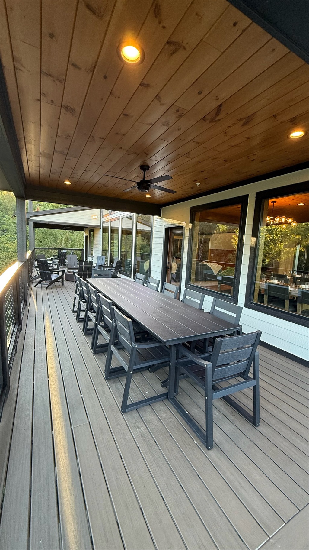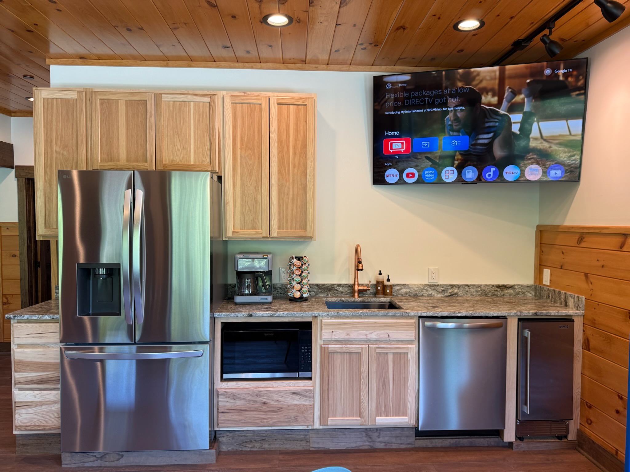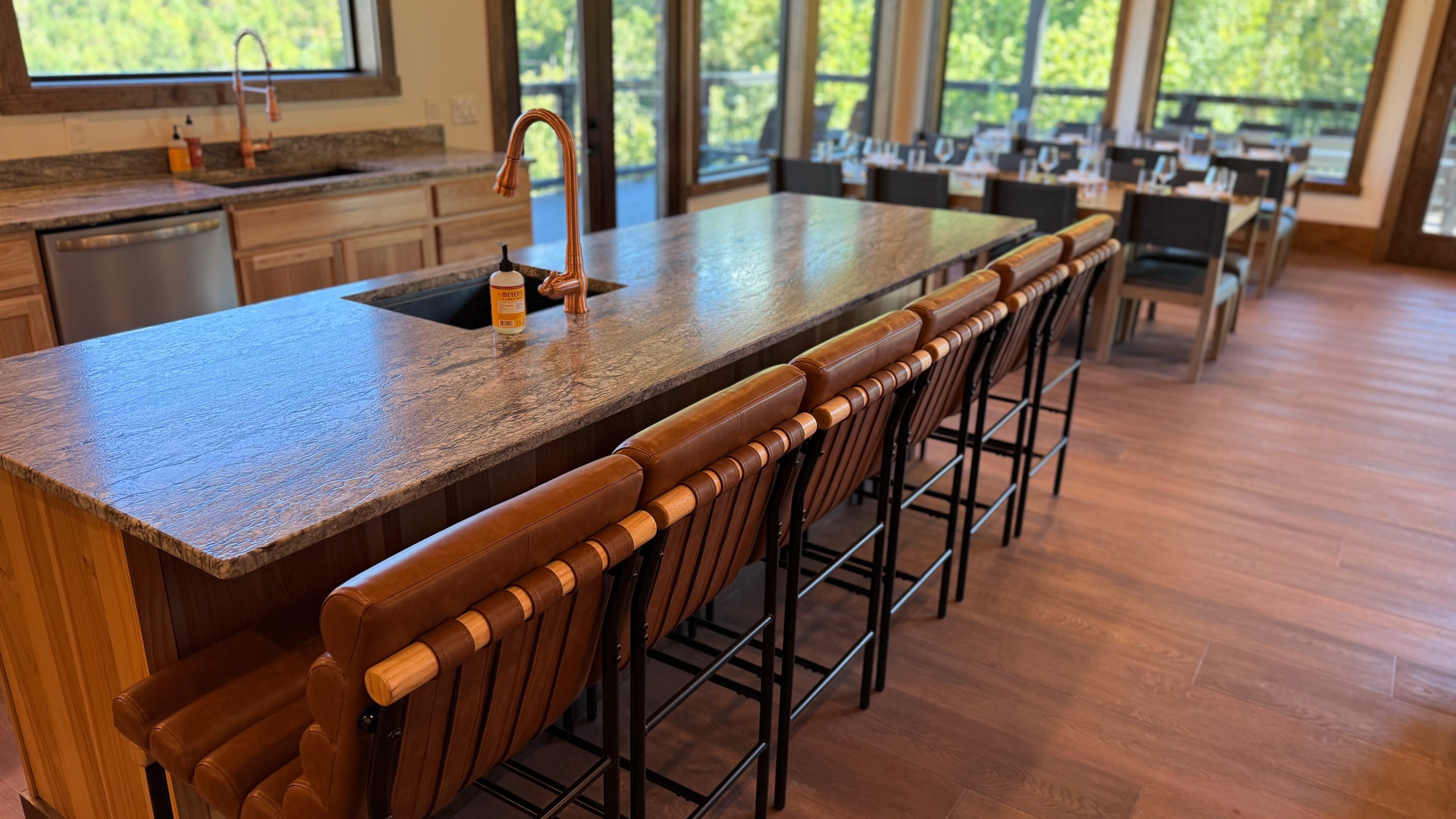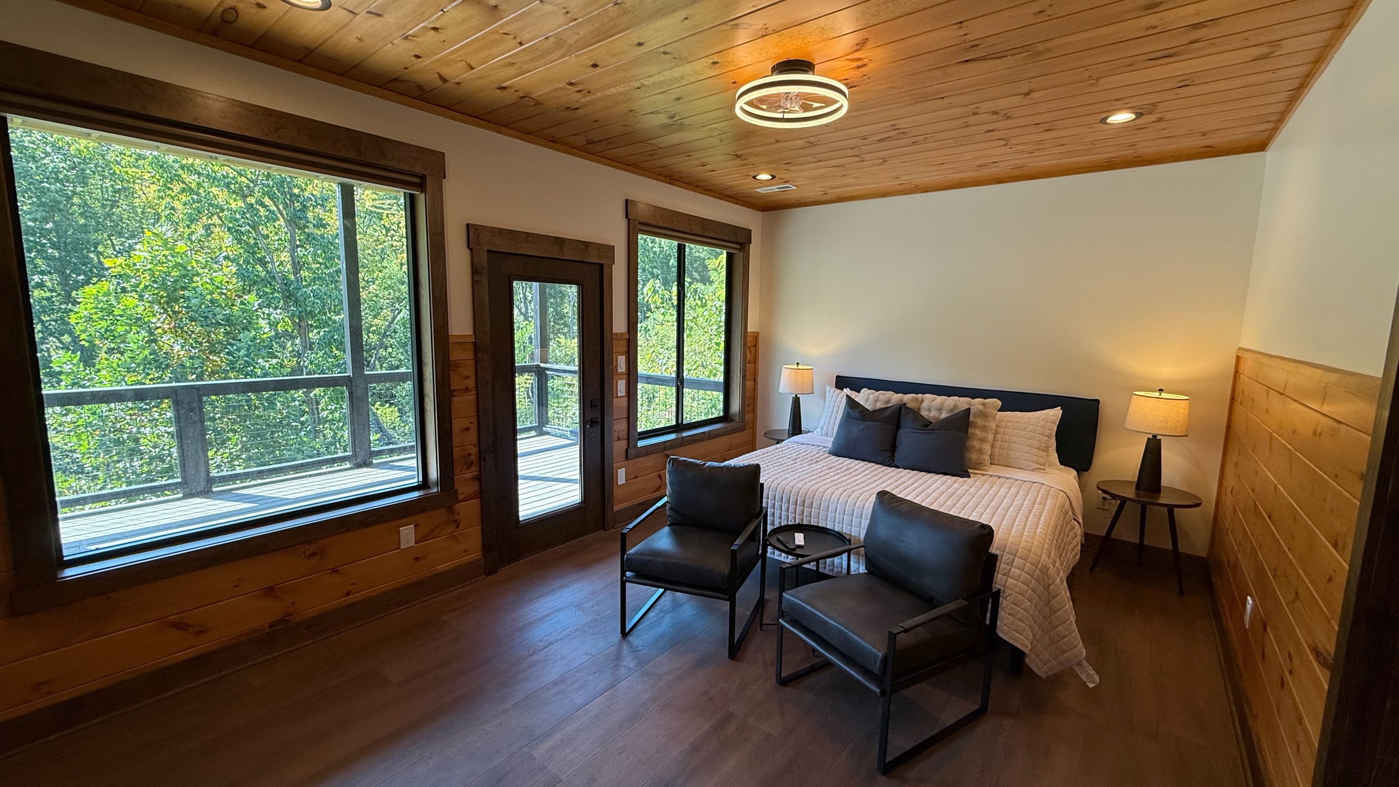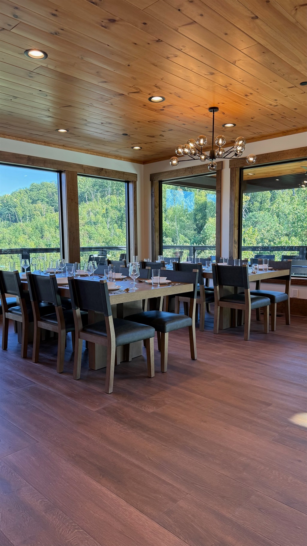 The heart of the home is the fully stocked chef’s kitchen, thoughtfully designed for large groups and entertaining. It features 2 full-size refrigerators, 4 ovens, 2 dishwashers, 2 sinks, 2 microwaves, and a dedicated coffee bar, ensuring you have everything you need to prepare and enjoy meals with ease. On another floor, a separate kitchenette features a third full-size refrigerator, dishwasher, microwave, sink, coffee bar and high output ice maker, add even more convenience. No need to buy ice for your coolers for the outing into the National Park or Dollywood. With dining seating for the entire group, shared meals become memorable experiences—whether indoors or on the expansive wrap-around covered deck with breathtaking mountain views. Sit around the fire table, relax and enjoy the privacy, trees and mountains with family and friends.