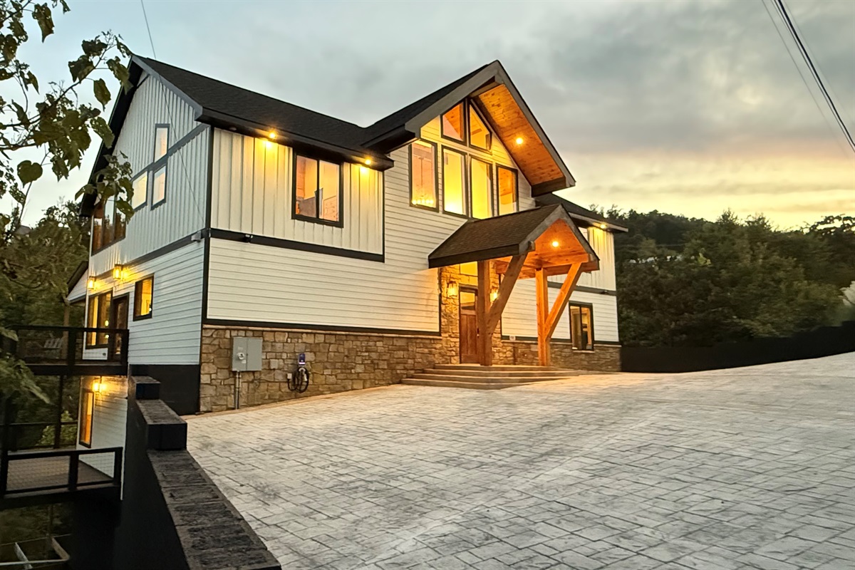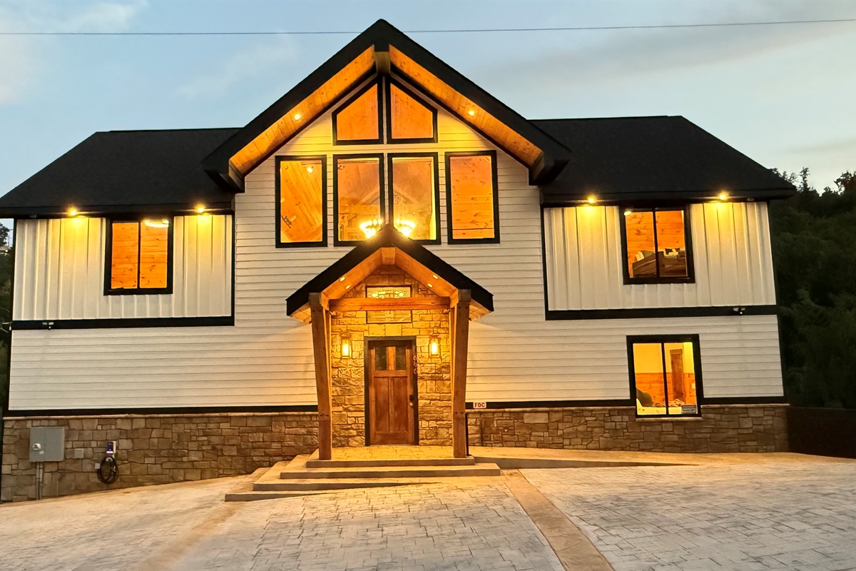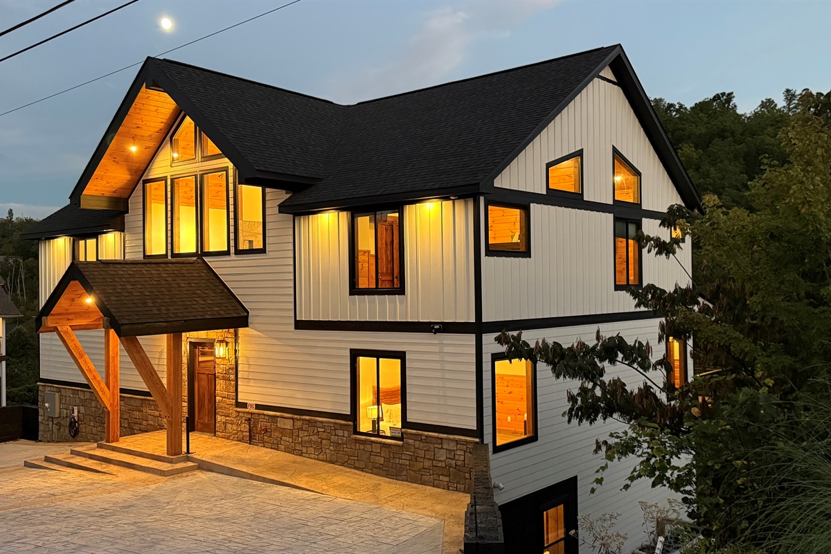 Step into refined mountain living at this stunning Mountain Modern lodge, where breathtaking design meets ultimate comfort. Perfectly situated just minutes from downtown Gatlinburg and the Great Smoky Mountains National Park, this 8-bedroom, 8.5-bathroom retreat is designed to host up to 22 guests comfortably in style.