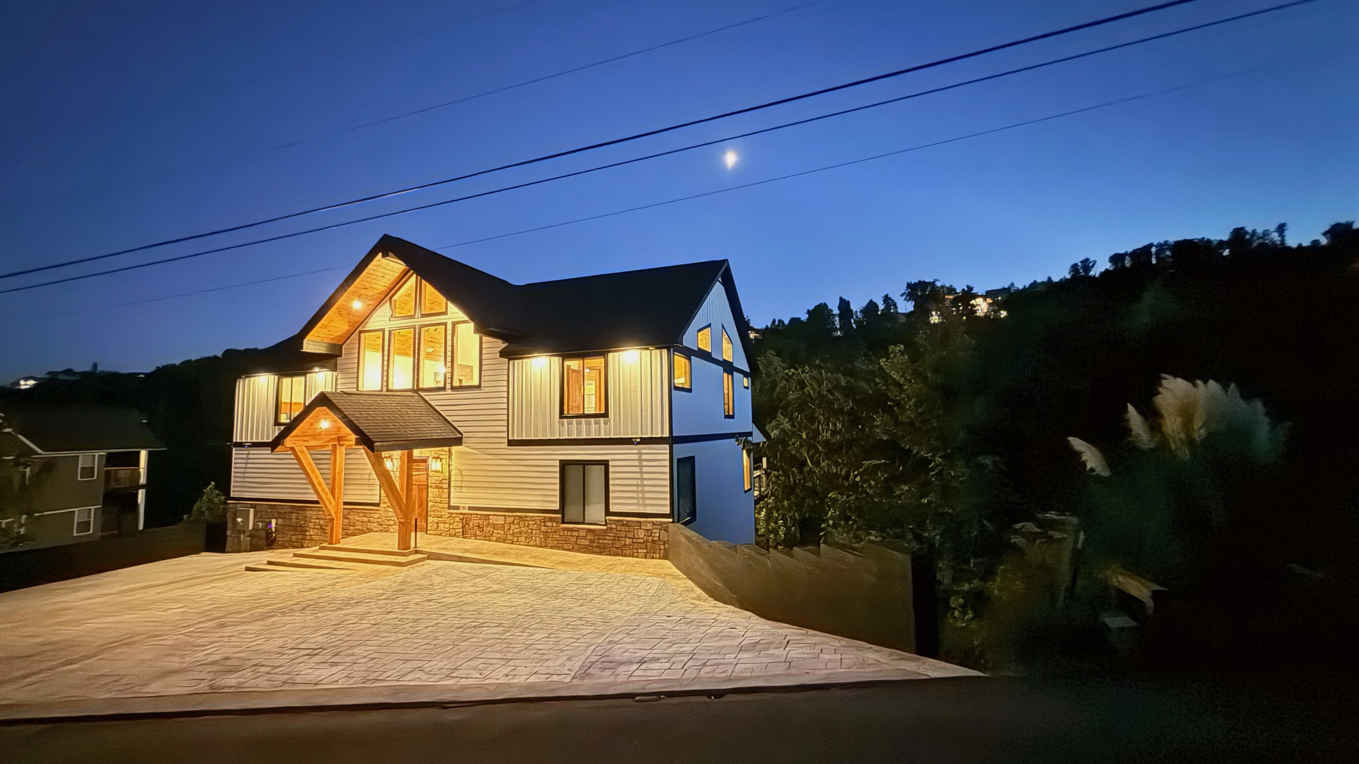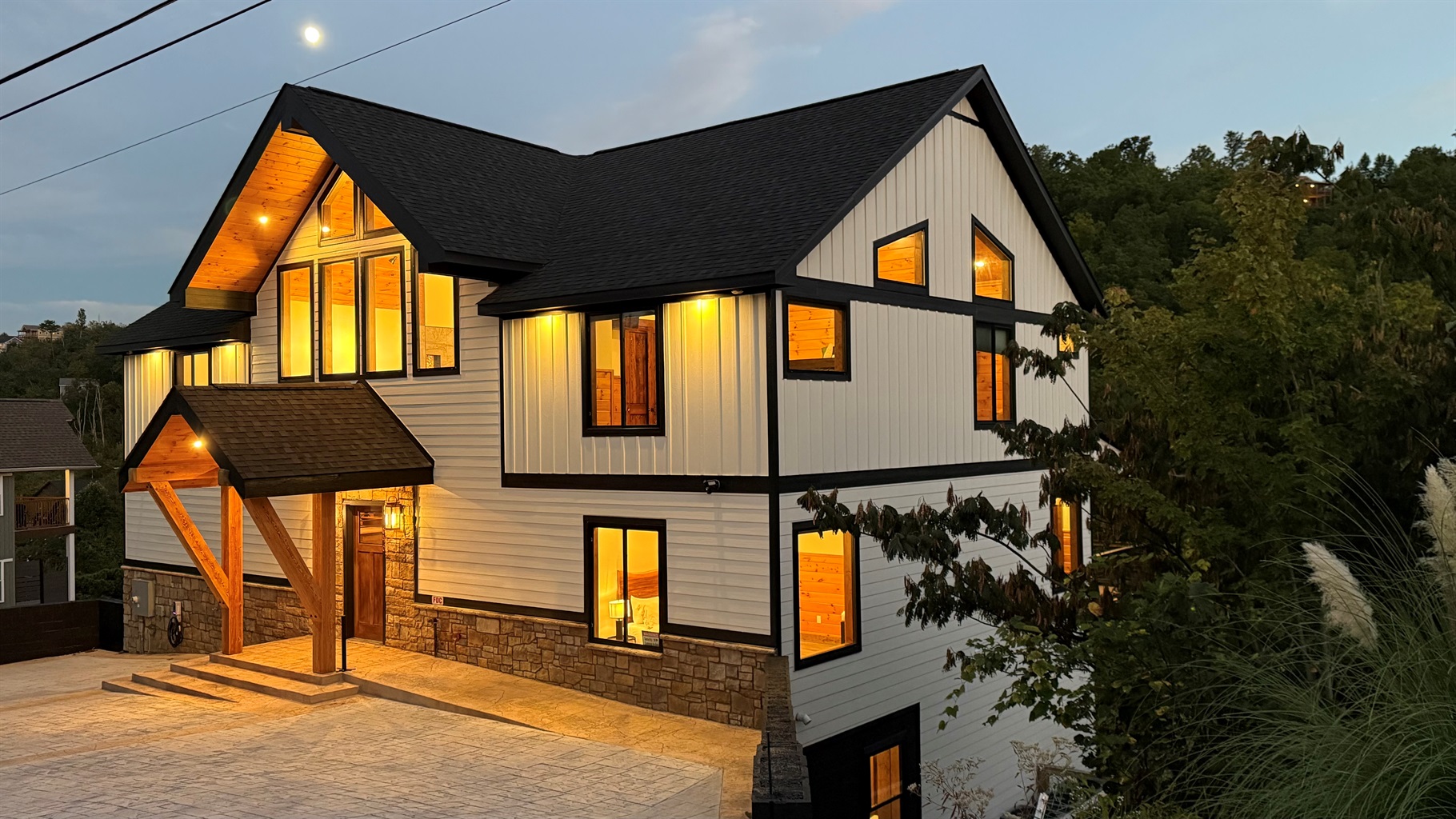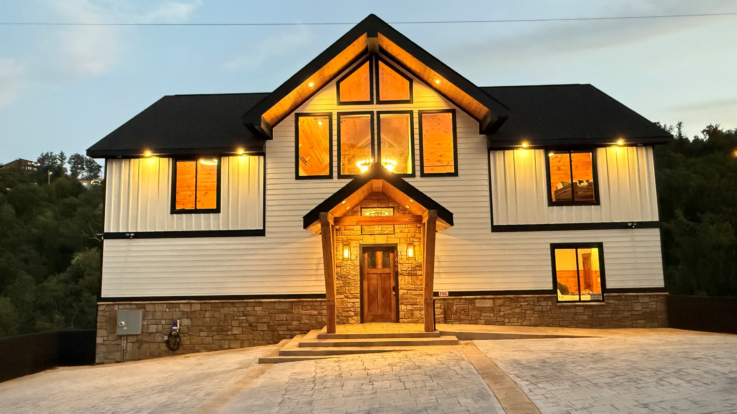 Step into refined mountain living at this stunning Mountain Modern lodge, where breathtaking design meets ultimate comfort. Perfectly situated just minutes from downtown Gatlinburg and the Great Smoky Mountains National Park, this 8-bedroom, 8.5-bathroom retreat is designed to host up to 22 guests comfortably in style.