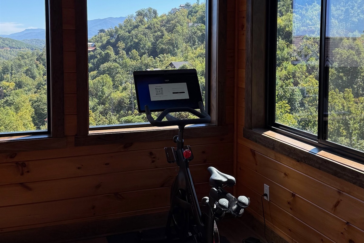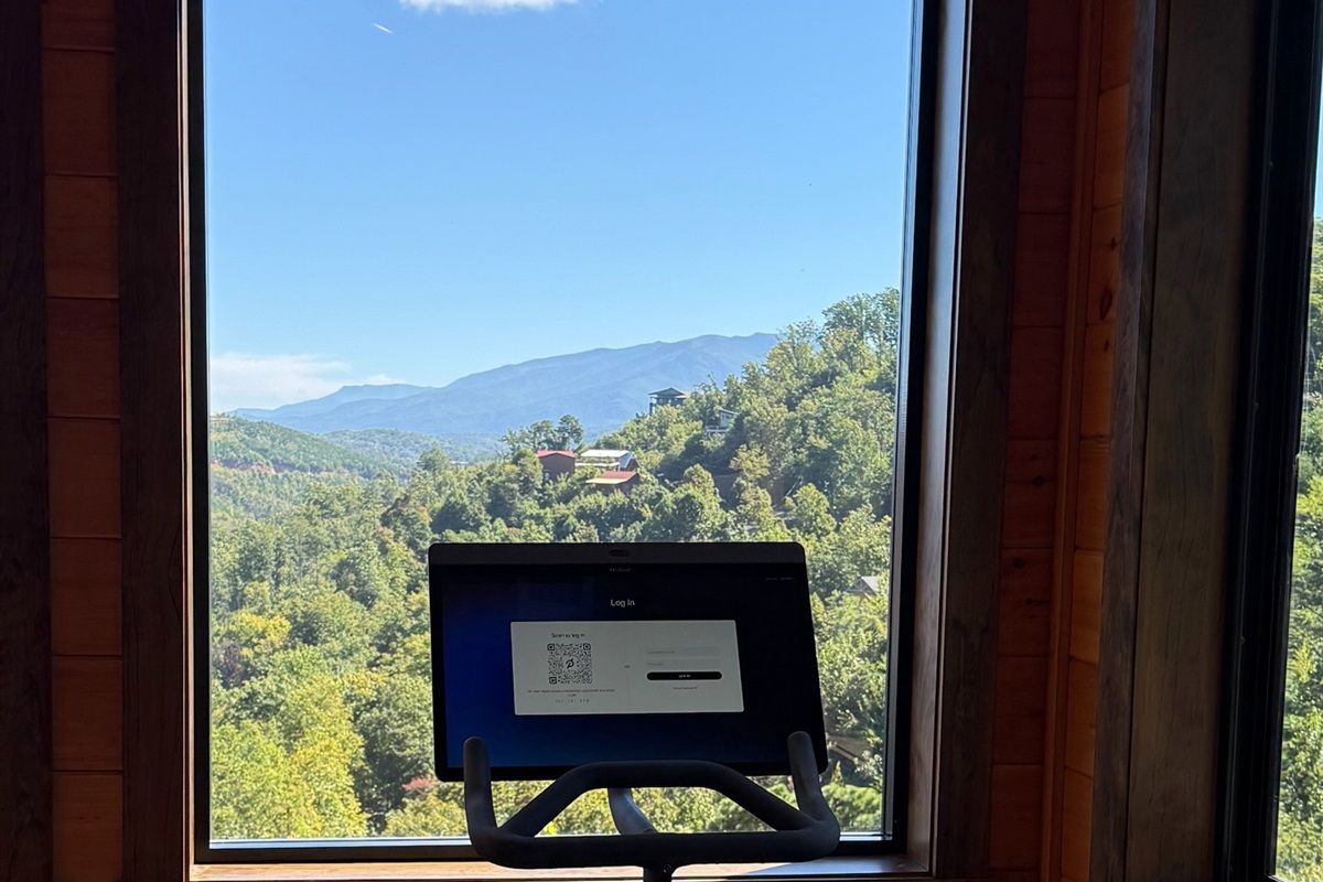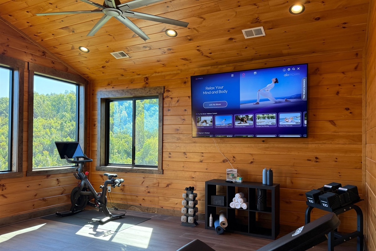 Upstairs, the gym offers more than just a place to work out—it boasts inspiring Smoky Mountain views and a built-in interactive gaming experience, combining fitness and fun in one unique space.