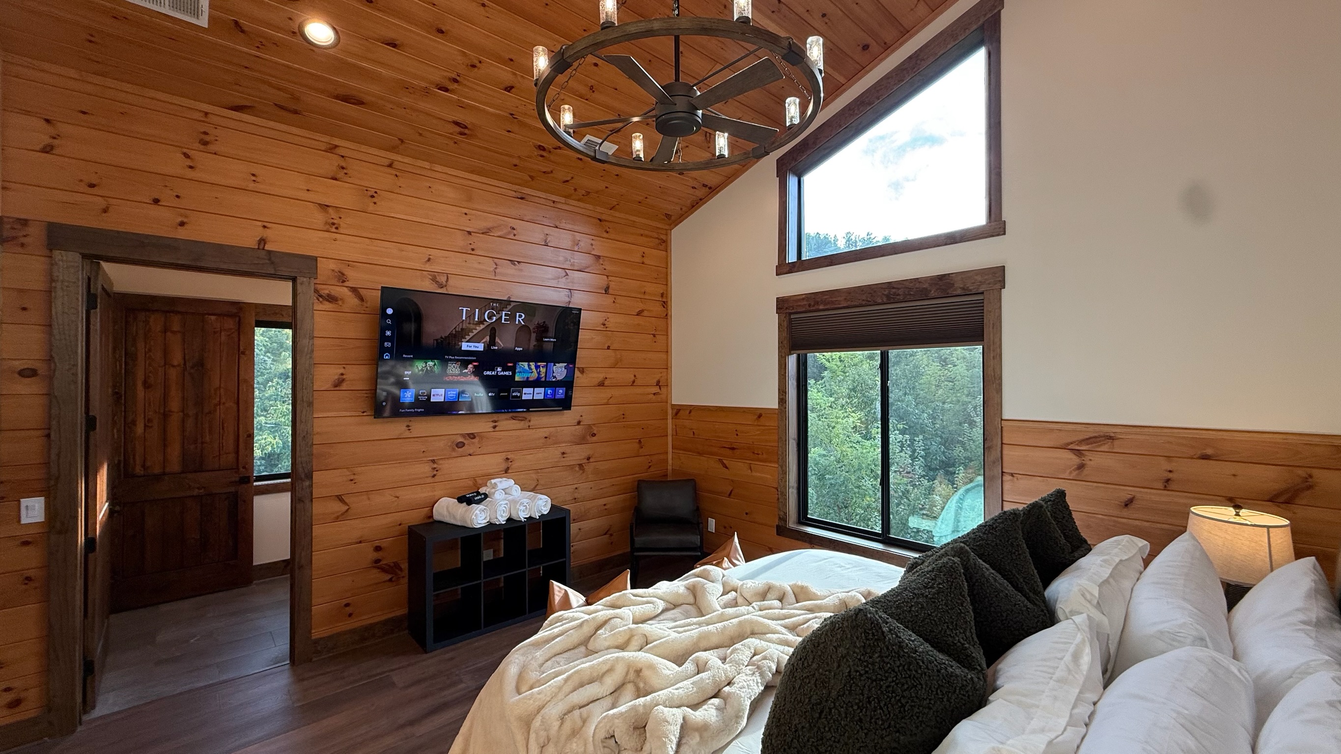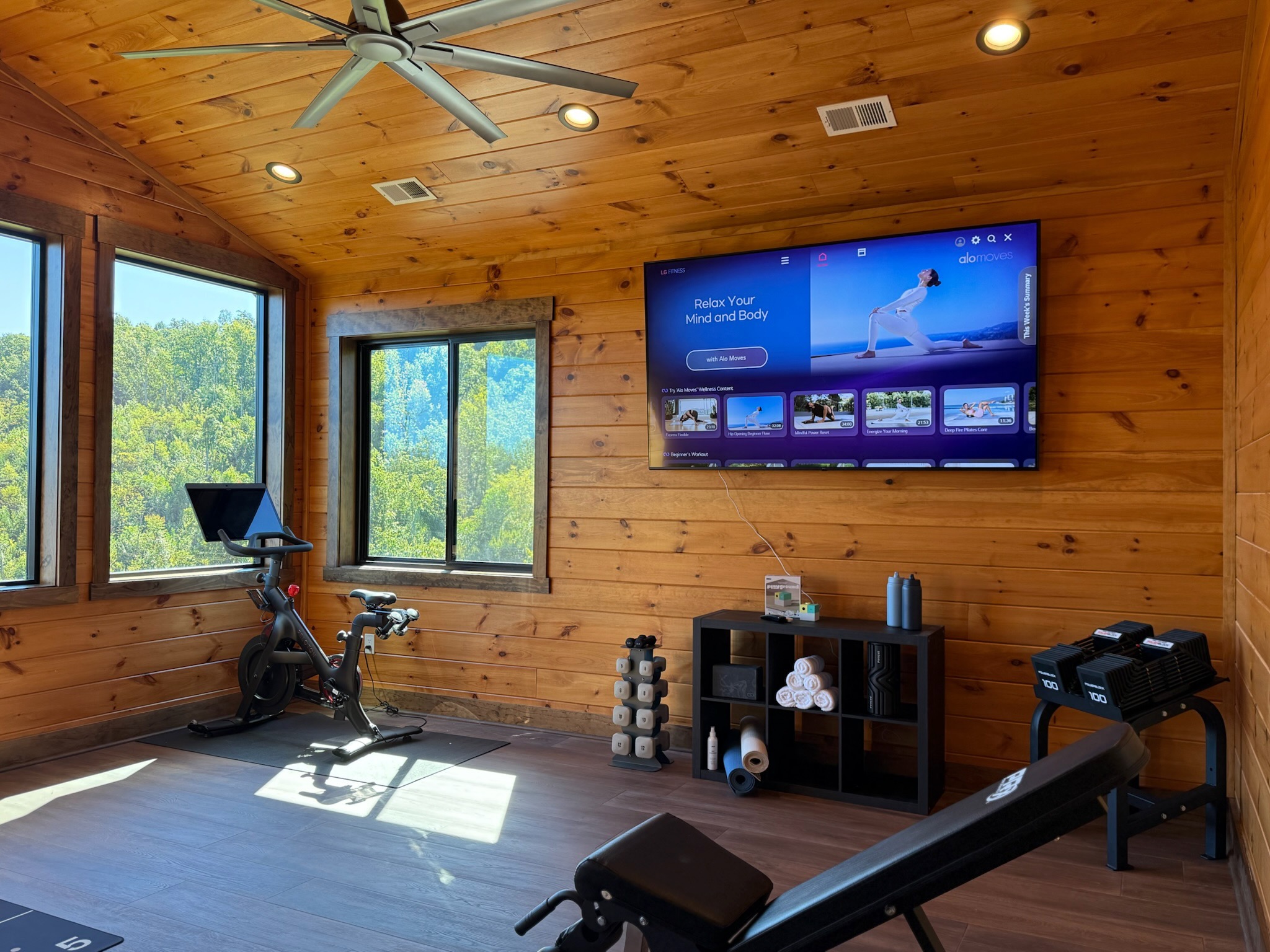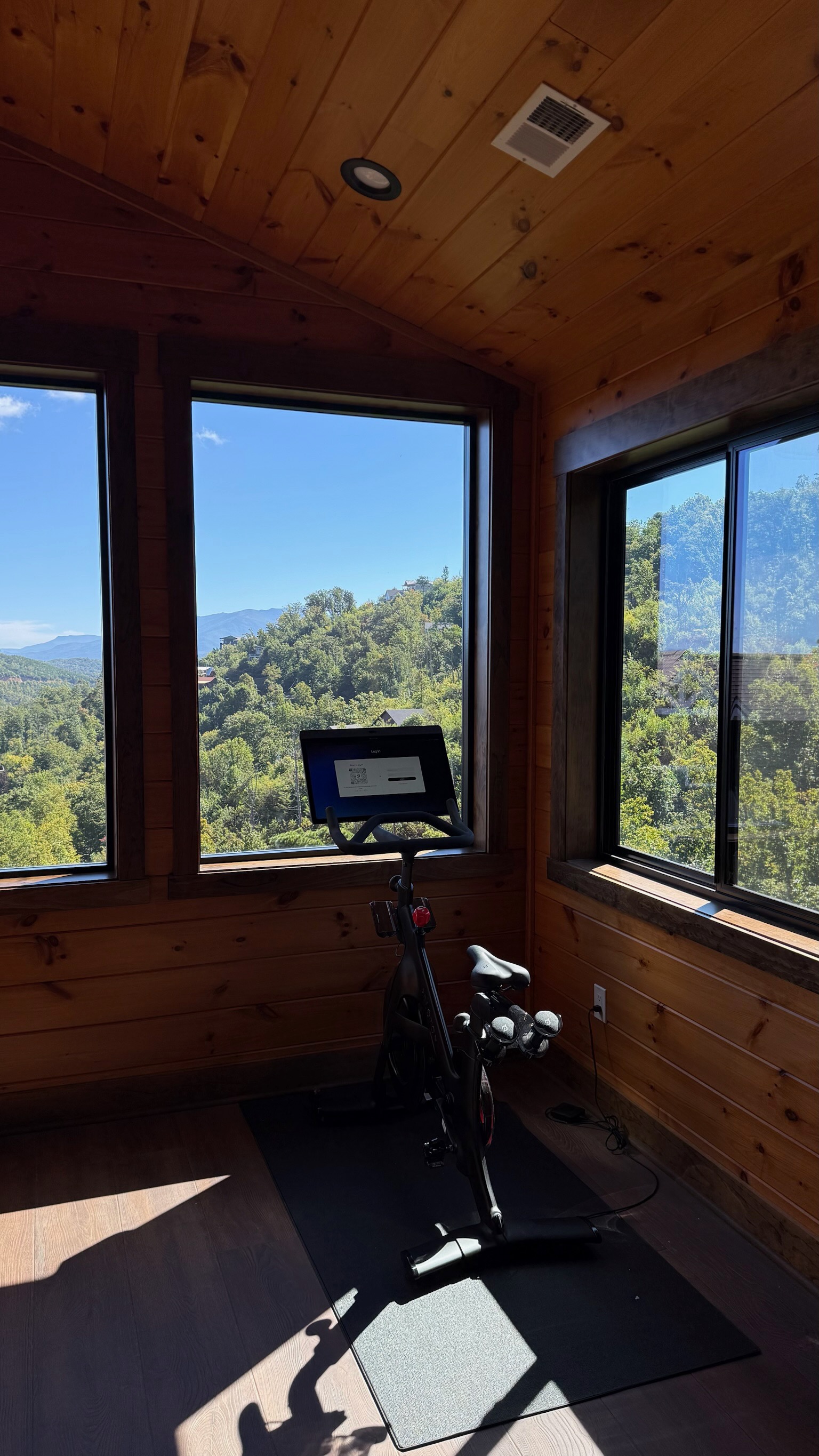 Upstairs, the gym offers more than just a place to work out—it boasts inspiring Smoky Mountain views and a built-in interactive gaming experience, combining fitness and fun in one unique space.