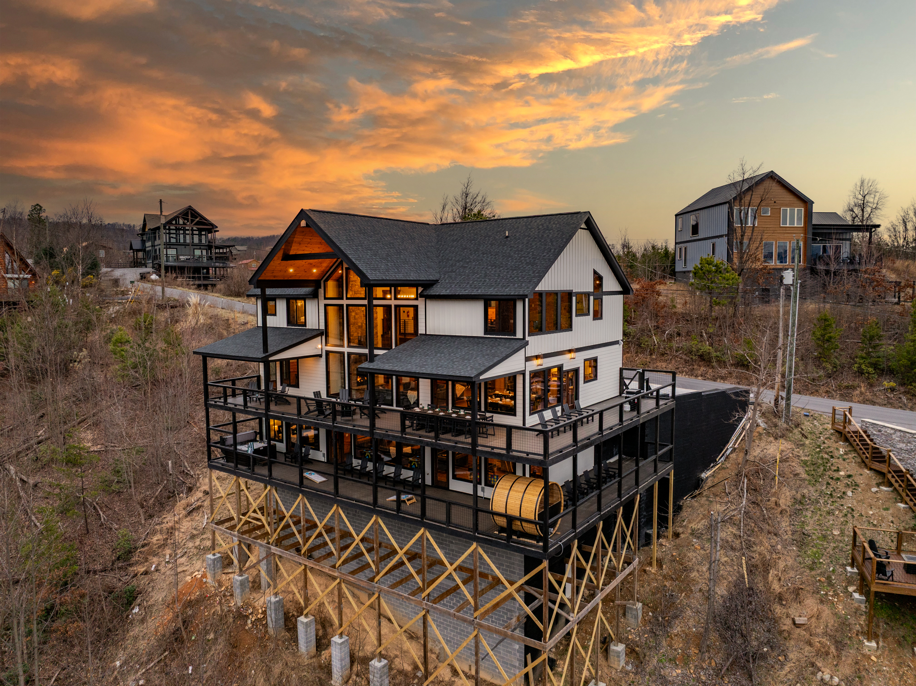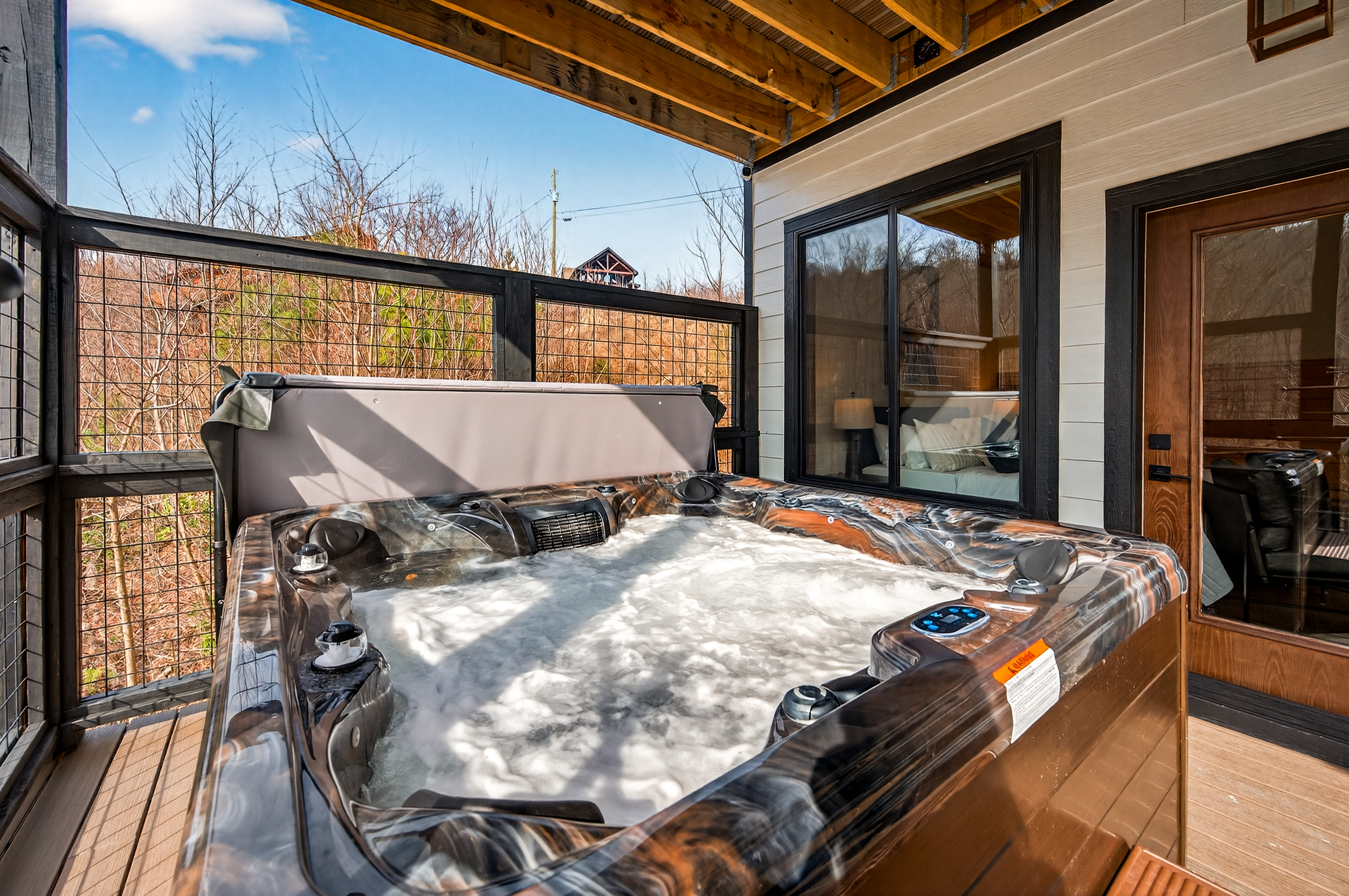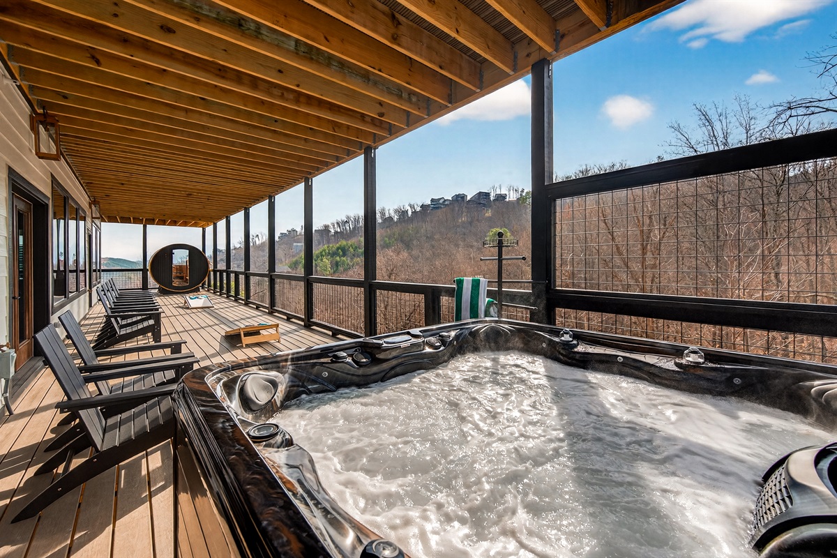 🔥 Private Smoky Mountain View Sauna – Relax, detox, and recharge in the outdoor sauna with a stunning window overlooking the Smoky Mountains. The perfect place to unwind after hiking, exploring Gatlinburg, or soaking in the hot tub. A true luxury cabin sp