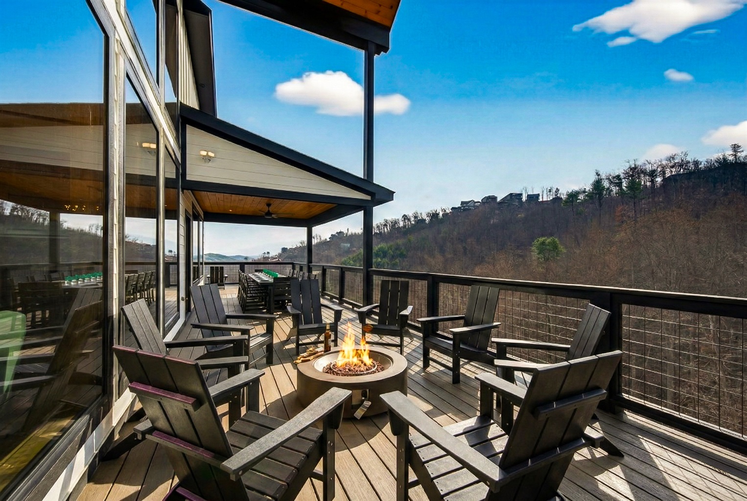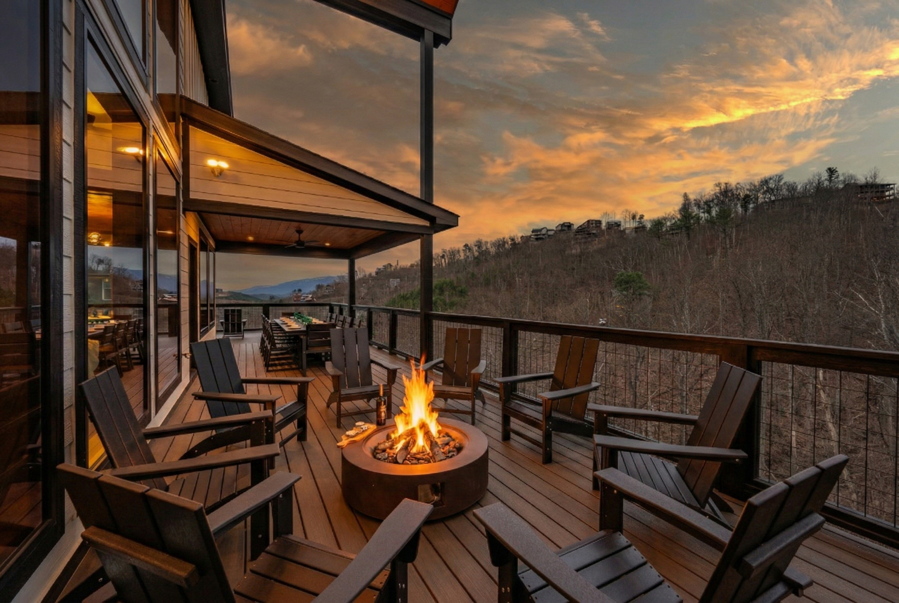 🍽️ Dining with a View – Enjoy meals together at the covered outdoor dining area overlooking the Smoky Mountains. Whether it’s morning coffee or dinner at sunset, the mountain views make every meal feel special.