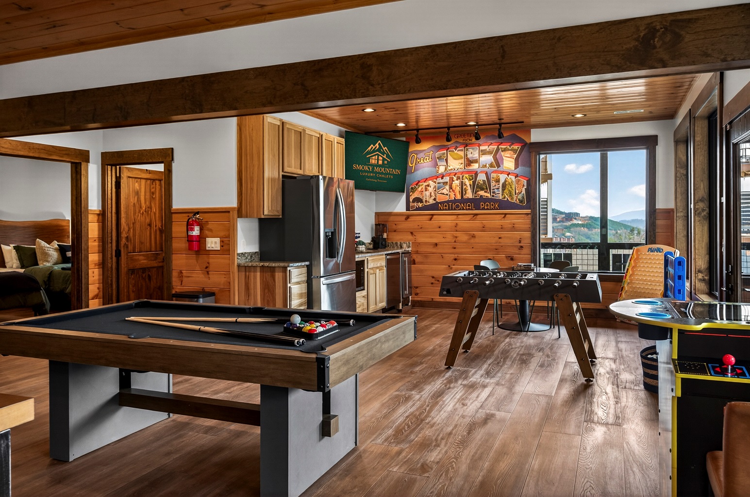 The perfect hangout after a day exploring the Smokies. Enjoy hours of fun with pool, shuffleboard, foosball & classic arcade tables plus a convenient kitchenette for snacks and drinks. This entertainment-packed space is designed for family fun, game nights